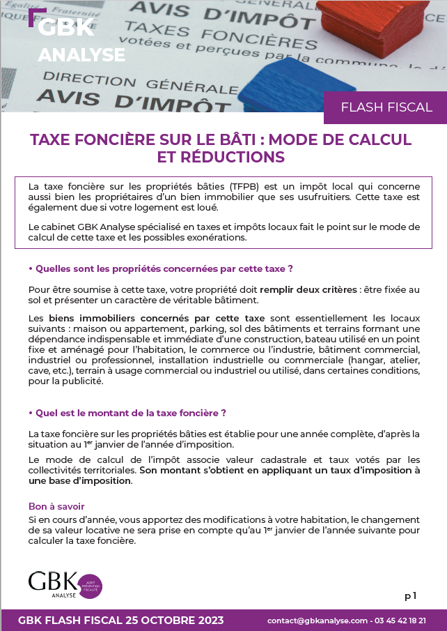 GBK Analyse propose un accompagnement sur-mesure dans l’ensemble des démarches et interrogations ayant trait à la fiscalité des entreprises et des impôts fonciers.