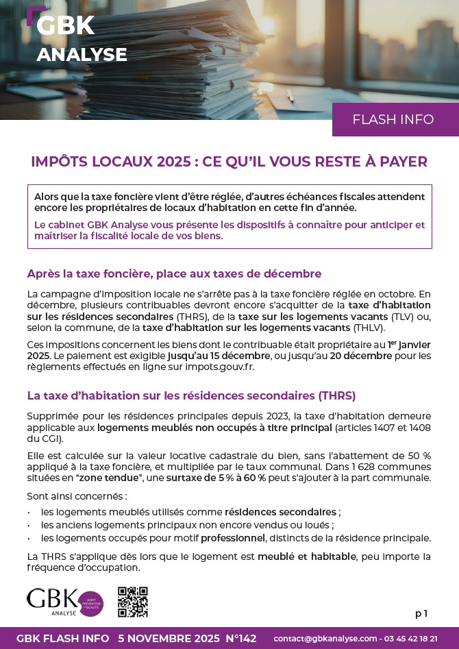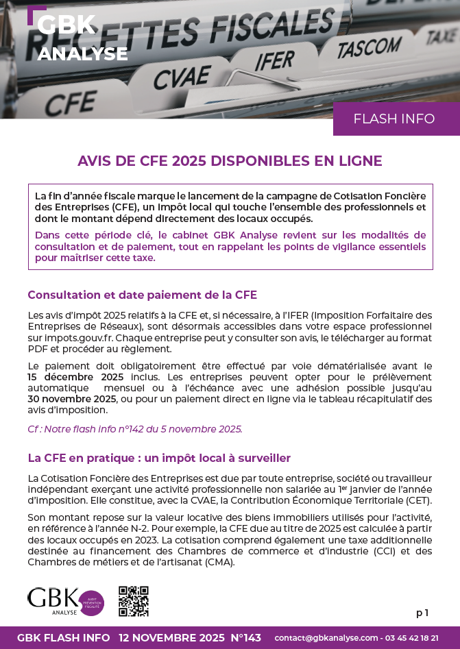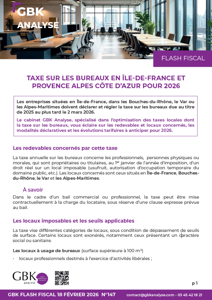 Retrouvez nos derniers flashs infos pour suivre l’actualité de la fiscalité des entreprises et des impôts fonciers