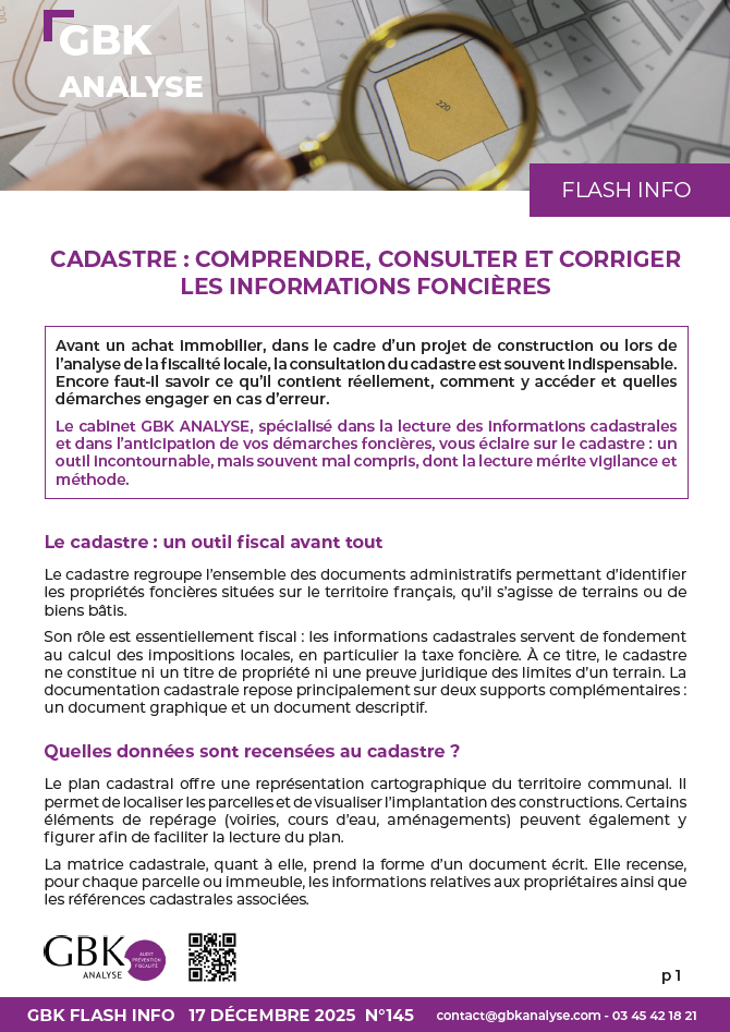 Retrouvez nos derniers flashs infos pour suivre l’actualité de la fiscalité des entreprises et des impôts fonciers